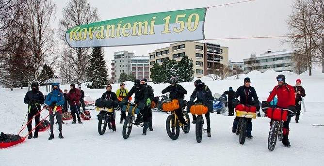 Inicialmente, la Rovaniemi 150 contaba sólo con una distancia, con salida en el rio Kemijoki, en el centro de la ciudad de Rovaniemi. El recorrido de 150 km, y unos 1600 m de desnivel positivo, avanza por un paisaje blanco, a través de ríos y lagos congelados, carreteras de veranos cubiertas de nieve y algún bosque. Aunque el camino está marcado, es obligatorio llevar un GPS para llegar a los 9 puntos de control de obligado paso. Algunos de éstos tienen fuego, agua y tiendas de campaña.