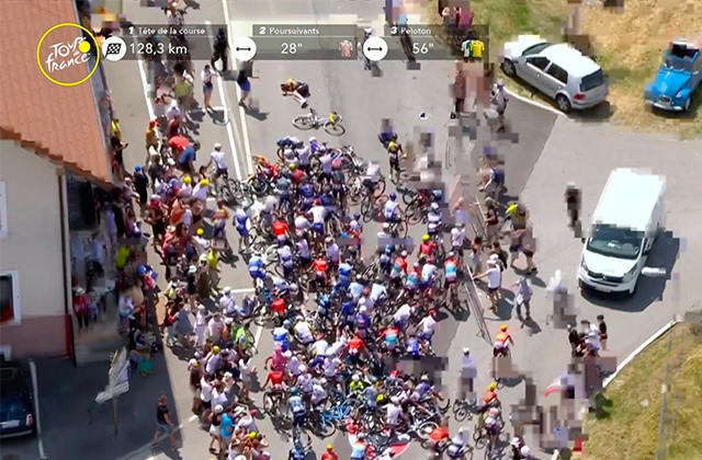 Y la más lamentable y evitable de toda la colección de caídas, la de hoy en el kilómetro 40 de esta decimoquinta etapa.