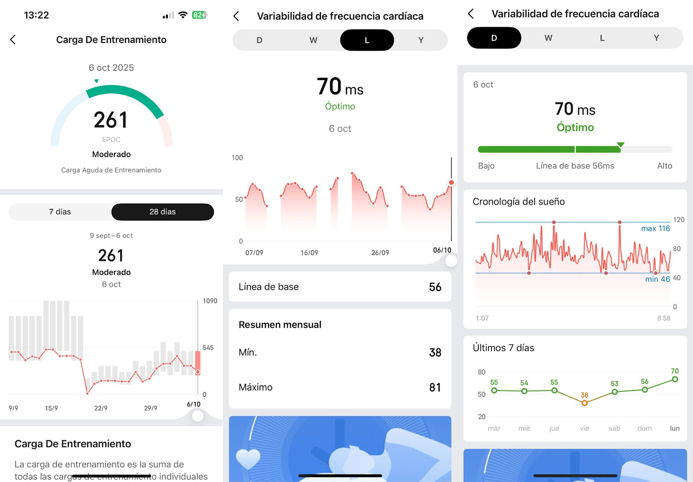 Esta métrica indica cuánto tiempo necesita el cuerpo para recuperarse totalmente tras un entrenamiento. Dependiendo de la intensidad y duración del esfuerzo, la recuperación puede variar desde unas pocas horas hasta varios días.