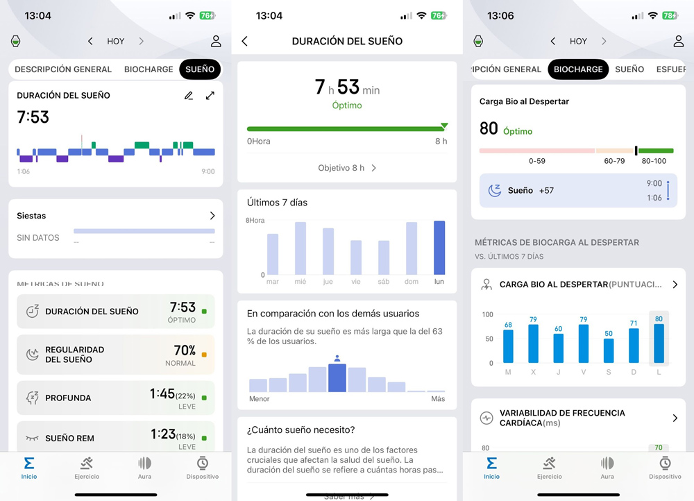 Esta puntuación se recarga con el descanso y el sueño de calidad, pero un solo día de descanso a menudo no es suficiente. Mantener BioCharge alta en los últimos días antes de la competición ayuda a garantizar un rendimiento óptimo.
