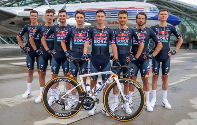 8.- Los ciclistas del Red Bull – Bora correrán con bicicletas S-Works de fibra de carbono fabricadas por la marca estadounidense Specialized. La ropa que vestirán serán de la marca Sportful, quienes han diseñado el nuevo maillot del equipo y que incluye al nuevo patrocinador, Red Bull,