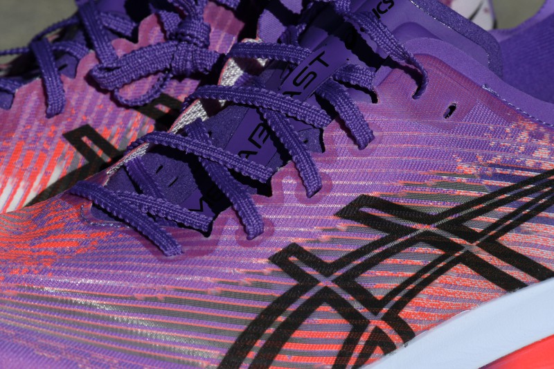 El upper de la Megablast está construido con una malla engineered muy ligera, reforzada en zonas clave para mantener estructura sin convertirla en un modelo rígido. ASICS incorpora materiales reciclados en parte de la malla. Se siente transpirable, con un ajuste ceñido y controlado.