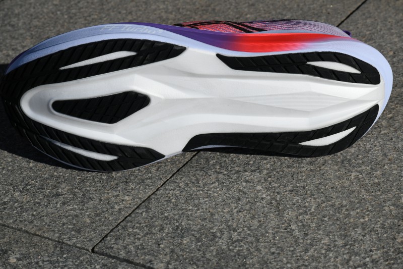 Con la mediasuela, Megablast es donde se separa del pelotón. Emplea FF Turbo, una nueva espuma A-TPU con densidad y retorno muy superiores a compuestos tradicionales. Su tacto es el de una espuma moderna: rebotona, ligera y sorprendentemente estable para su volumen.