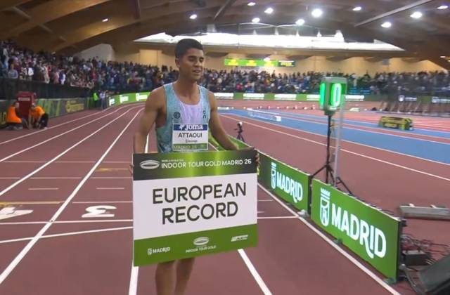 El joven atleta cántabro, de 24 años y plusmarquista nacional al aire libre con 2:12.25, se quedó a un paso del récord del mundo pero sí consiguió el de Europa y el de España, ayudado por dos ‘liebres’, el polaco Filip Ostrowski y el español Alejandro José Matienzo, aunque no quedó contento con la retirada de una de ellos. En esa misma carrera, Attaoui se enfrentó a otros dos españoles, ambos campeones del mundo y de Europa de 800 metros en pista cubierta como Mariano García, segundo (2:16.40), y Adrián Ben, tercero (2:16.80).