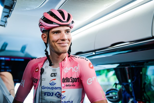 Attila Valter, con la maglia rosa a todos lados. Foto: Equip FDJ