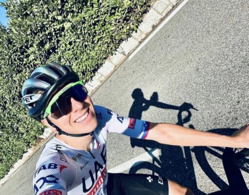 Pogacar se graba con el móvil mientras mueve 500 vatios
