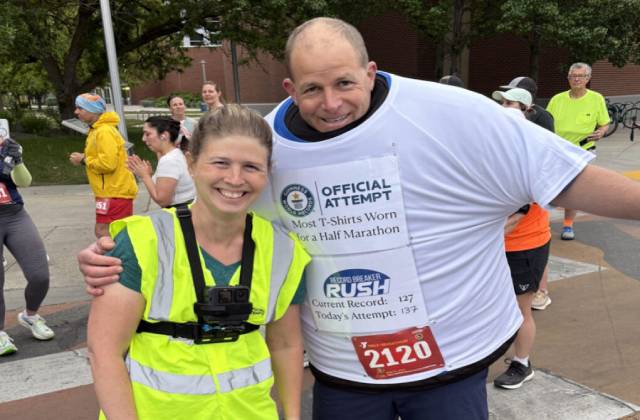 “Lo intenté por primera vez (romper el récord) en mayo de 2024”, declaró Rush a Canadian Running . “Pero cuando me puse 114 camisetas ese año, perdí la circulación en el cuello y tuve que abandonar el intento”. Rush volvió a intentarlo con éxito un año después, tras conseguir seis camisetas XL más para cubrirse; completó la carrera con éxito, a pesar de perder la circulación en las manos, intentar no sobrecalentarse y luchar contra la claustrofobia.