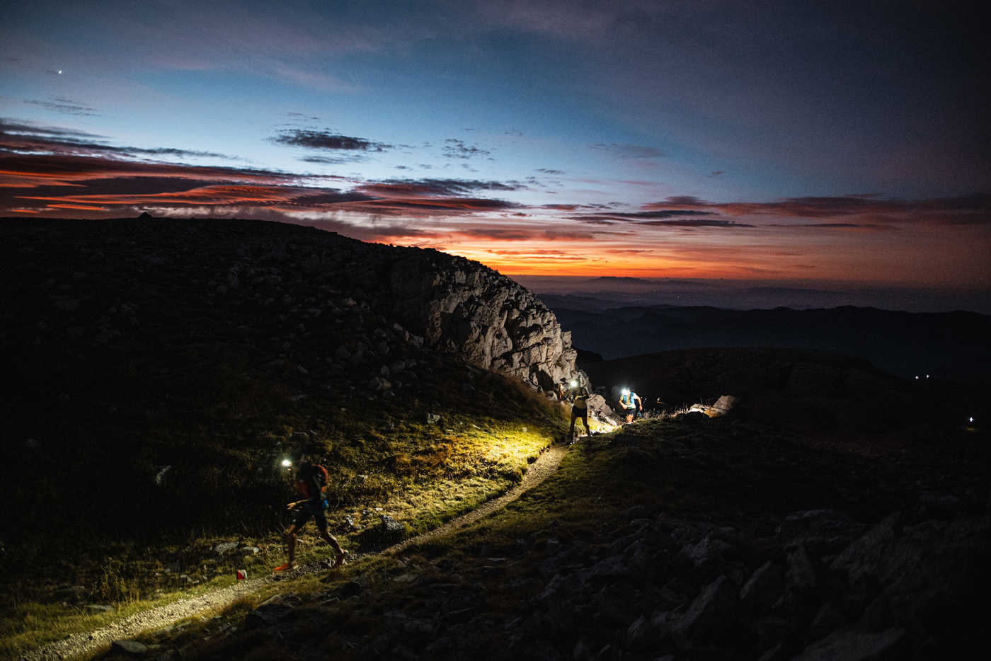 La jornada del sábado 4 de octubre comenzaba antes del amanecer, con los primeros corredores calentando motores junto a la línea de salida para afrontar los 100 kilómetros y más de 6.600 metros de desnivel que tenían por delante. A las 5:30h, con el himno de la Ultra Pirineu, El Último Mohicano, resonando por las calles de Bagà, cerca de 1.300 participantes cruzaban el arco de salida de la plaza Porxada, guiados por la luz de sus frontales.