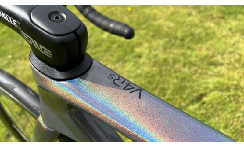 Esta joya sobre ruedas, el modelo V4R meticulosamente diseñado por Colnago en estrecha colaboración con el propio Pogačar, lleva consigo una librea especialmente concebida para la ocasión. Lo que la hace aún más deslumbrante es su pintura prismática, caracterizada por la inclusión de pigmentos holográficos que provocan efectos cambiantes en su coloración.