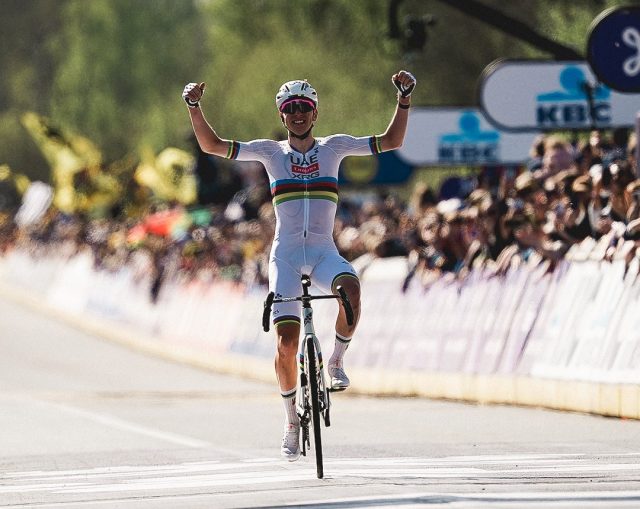 En un escenario icónico por las dos subidas míticas del Tour de Flandes, el esloveno ha dejado una huella imborrable con una actuación legendaria con tan solo 26 años. Con un ataque explosivo en el Viejo Kwaremont, soltando a Mathieu van der Poel y los demás favoritos, el líder del UAE Team Emirates vuelve a escribir otra página en el libro de las actuaciones antológicas de este apasionado deporte con su victoria 92.