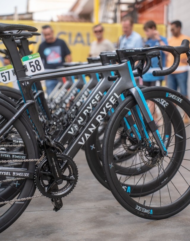 Miles de bicicletas de diferentes marcas y modelos, las Cervélo del Visma, la Canyon del Movistar, las Specialized del Soudal y entre ellas las Van Rysel del Decathlon. Unas bicicletas que pudimos ver y analizar el sábado antes con los mecánicos del equipo.