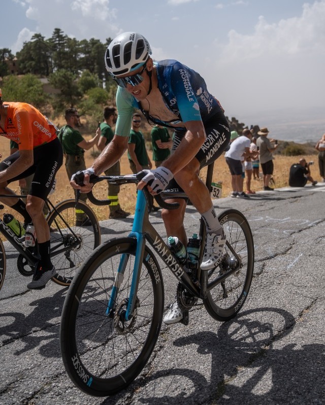 A 58 km de meta, Yates atacó en la primera subida al Alto de Hazallanas: 7,1 km al 9,5% y rampas máximas del 20%. Un estacazo ante los otros escapados en cabeza: Vine, y Gaudu que pudimos ver por el móvil para no perdernos ningún detalle.