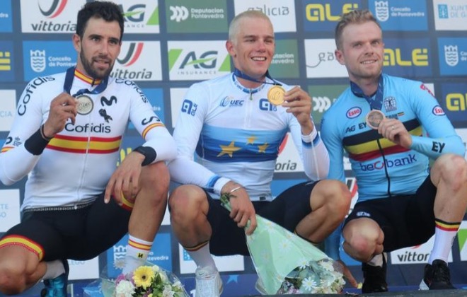 Tercero llegó Eli Iserbyt a seis segundos del ciclista español.