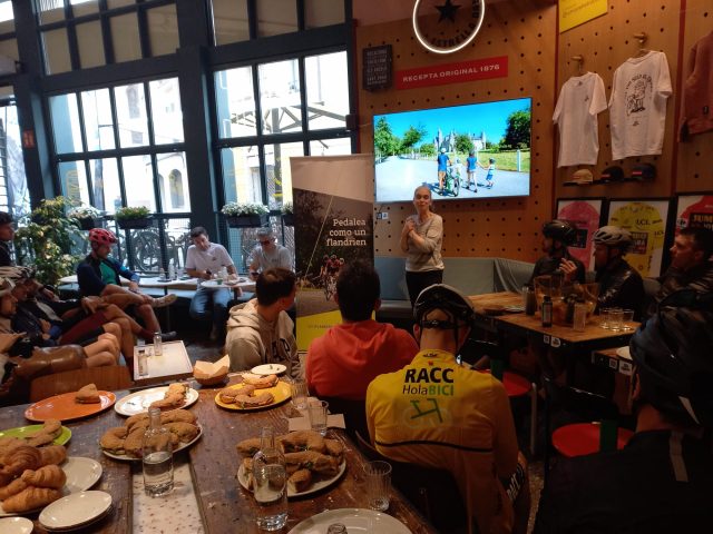 El dia empezó con una presentación a cargo de la responsable del departamento en comunicación en España de Turismo Flandes, Angeles Alonso–Misol Gerlache donde resaltó que “el ciclismo es el medio para conseguir que Flandes florezca como destino turístico“. Tal como explicó Misol Gerlache, el objetivo del evento se trata de conectar a toda la comunidad cicloturista y ofrecer las oportunidades que tiene Flandes para los amantes del cicloturismo más profesional o amateur.