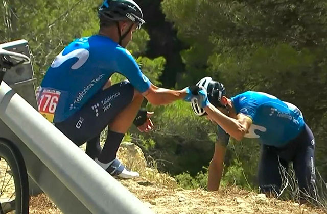 Rojas ayudando a Valverde en una imagen ya mítica / AFP