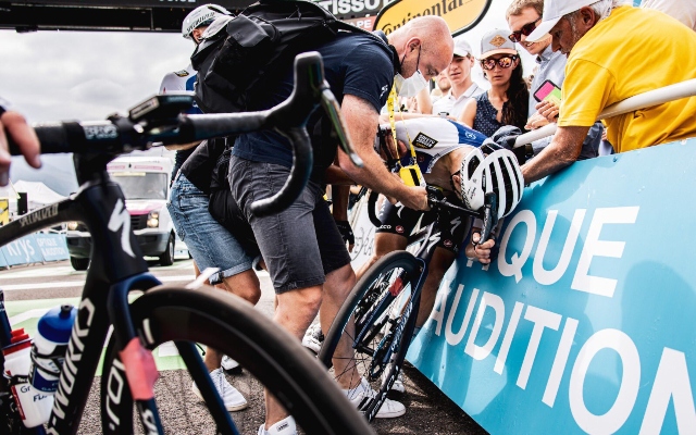En la llegada en Peyragudes, eso sí, le esperaban miembros del equipo y compañeros, animándolo para entrar dentro de tiempo.