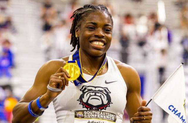 Adaejah Hodge posa con su medalla de oro en la NCAA