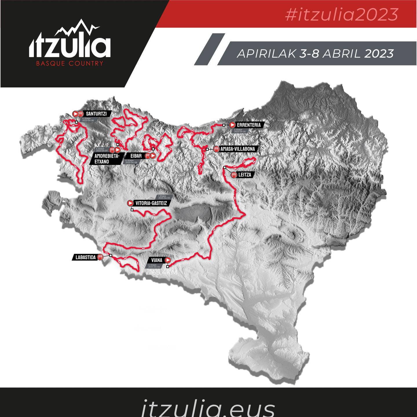 La Vuelta al País Vasco-Itzulia de 2023 no tendrá jornada contrarreloj y contará con un recorrido montañoso con hasta 26 puertos puntuables, según ha dado a conocer este miércoles la organización al detallar los pormenores de las seis etapas que se disputarán entre el 3 y el 8 de abril.
