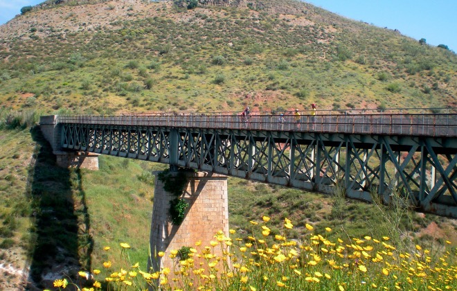 El caso es que actualmente toda esa infraestructura sirve de camino ciclista de gran calidad, tanto por su terreno como por su belleza paisajística. De hecho destacan nueve impresionantes viaductos metálicos que datan de finales del siglo XIX.