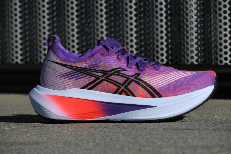 ASICSgrip en la suela, como caucho resistente, y una malla al 50% reciclada y muy ceñida al pie, rematan una muy digna zapatilla tanto para rodar rápido, como para ponerle un dorsal.