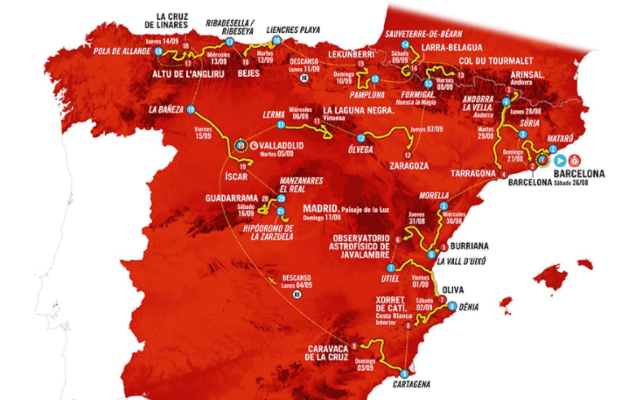 De entrada, es un recorrido que, como siempre, ha generado mucho debate y que se caracteriza por tener bastante montaña (Tourmalet, Angliru, Aubisque, Larrau, Javalambre, Arinsal, Ordino, Xorret de Catí…) y hasta diez finales en alto; muy poca contrarreloj; etapas que no superan los 200km y una crono inicial por equipos por las calles de Barcelona.