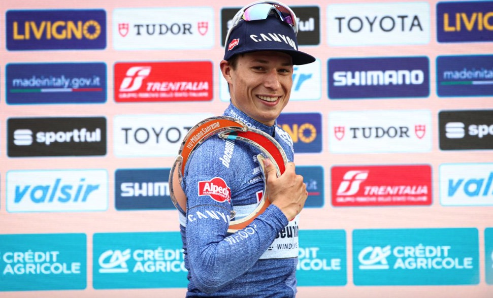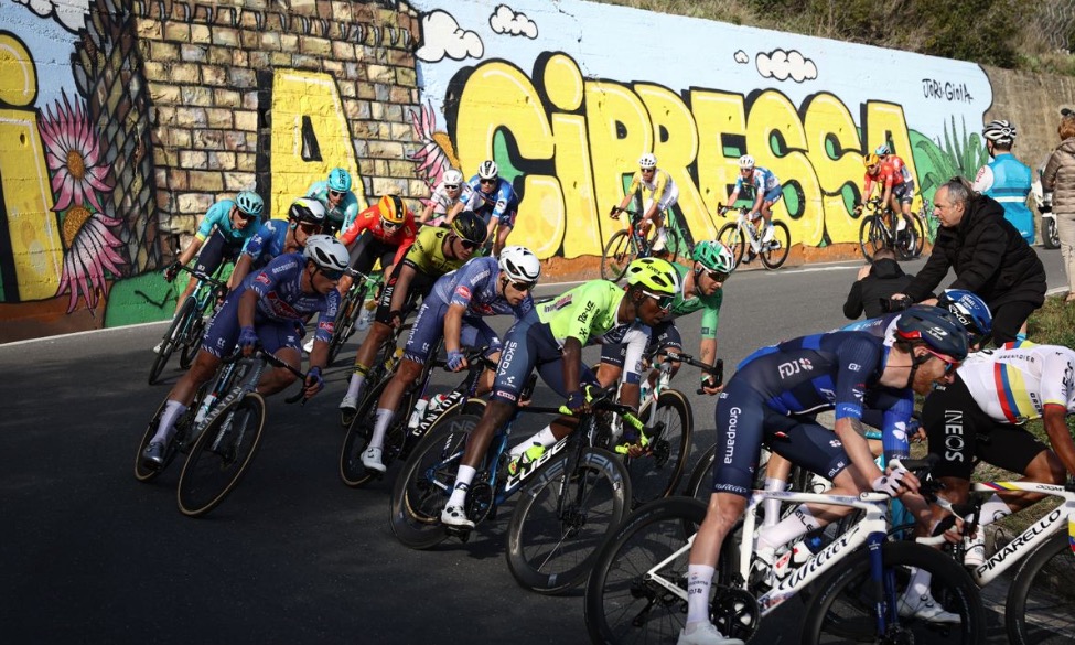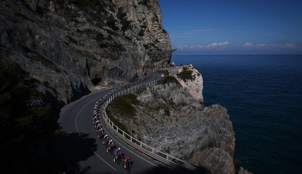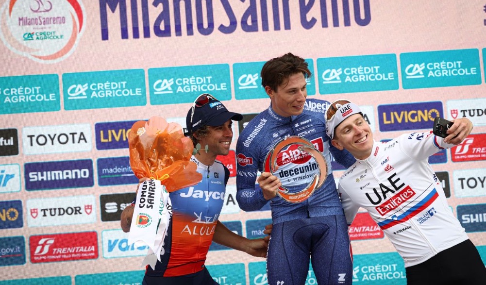 En línea, a toda velocidad, el pelotón recorrió la carretera que, llegando a San Remo tiene como espectacular balcón el mar Mediterráneo. Foto: milano-sanremoEl pelotón, compacto, en los primeros compases de la Classicissima, uno de los 5 monumentos ciclistas de cada temporada. Foto: milano-sanremoDetalle de los corredores durante la carrera en la que en algunos puntos rodaron a más de 70 km/h. Foto: milano-sanremoVertiginoso descenso de los corredores durante la Milán-San Remo celebrada el 16 de marzo de 2024. Foto: milano-sanremoEn las zonas abiertas se formaron abanicos que obligaron a los corredores a esforzarse a fondo para no perder posiciones. Foto: milano-sanremoEspectacular imagen del pelotón en fila de a uno a su llegada a la costa mediterránea. Foto: milano-sanremoJasper Philipsen celebra su primera victoria en la 115º edición de la Milán-San Remo. Foto: milano-sanremoPhilipsen se abraza a su compañero Mathieu Van der Poel tras saberse vencedor al sprint en la Milán-San Remo 2024. Foto: milano-sanremoPhilipsen sonriente con su trofeo en la Milán-San Remo 2024. Foto: milano-sanremoTadej Pogacar, uno de los favoritos que terminó en tercera posición se toma una foto con el ganador de la carrera, Jasper Philipsen y el segundo clasificado, Michael Matthews. Foto: milano-sanremo