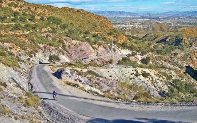 Ascender la Sierra Cabrera en Almería desde Turre, al sureste de Mojácar, es una ocasión inmejorable de disfrutar (y sufrir) sobre la bicicleta, con un desnivel positivo de casi 800 metros. Esta subida, aunque “solo” tenga 12 km de longitud con una pendiente media del 6%, es una de las clásicas en Andalucía. Lo primero que sorprende es la dureza de la primera rampa del 21%. Sin embargo se puede escoger la vertiente dura o una alternativa menos exigente.