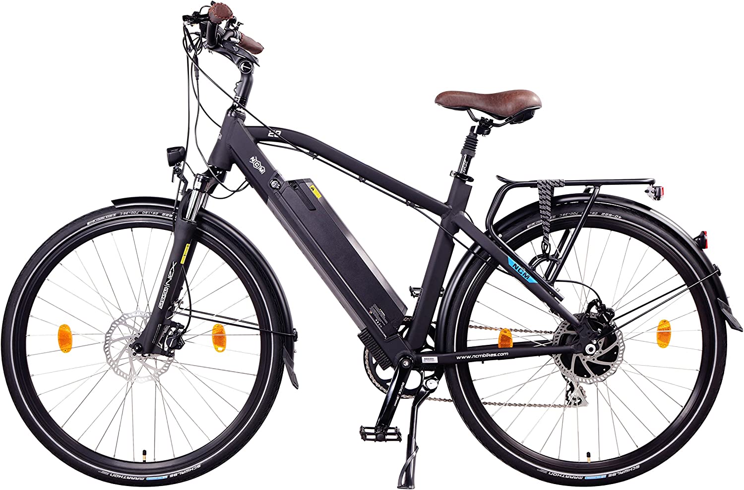 NCM Milano Plus ofrece una conducción cómoda, suave y segura gracias a sus seis niveles de asistencia del motor y sus ocho piñones traseros. La bicicleta incluye guardabarros trasero y delantero, portaequipajes y un bonito diseño donde destaca el blanco del cuadro junto con el acolchado en marrón del sillón y los puños.