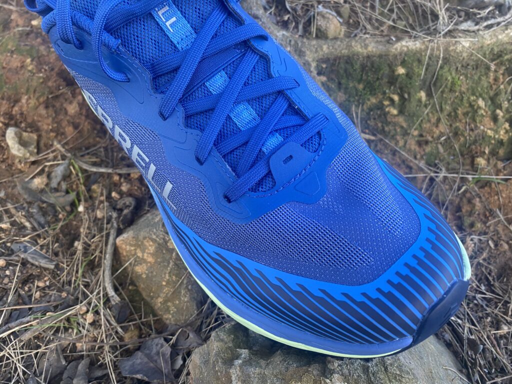 El aumento de confort también se deja notar en parte de los dedos ya que la nueva distribución de tensiones permite una puntera ligeramente más espaciosa. Esto es especialmente apreciado en esfuerzos prolongados, donde la inflamación natural del pie suele requerir una zona delantera más permisiva. Al mismo tiempo, la integridad estructural se mantiene gracias a un recubrimiento perimetral que actúa como protección 360°, reforzando la puntera y aportando resistencia al desgaste en terrenos pedregosos o abrasivos.