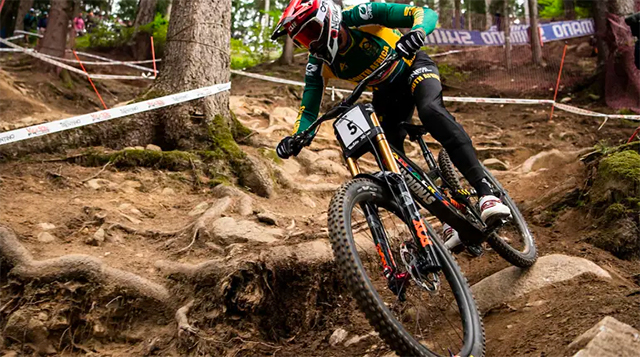 Todo es cuesta abajo en Fort William, donde los ciclistas realizan saltos, baches, bermas y jardines rocosos a contrarreloj a velocidades vertiginosas de hasta 80 km/h.