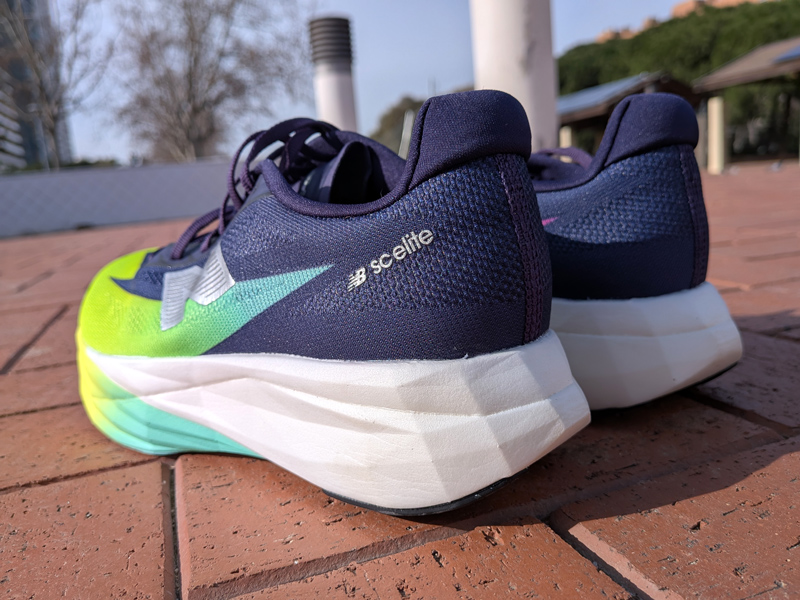 La suela de la New Balance FuelCell SuperComp Elite v5 sigue estando claramente marcada por la estructura que le impone Energy ARC desde la mediasuela, pero en esta edición ha habido un importante cambio en su diseño.