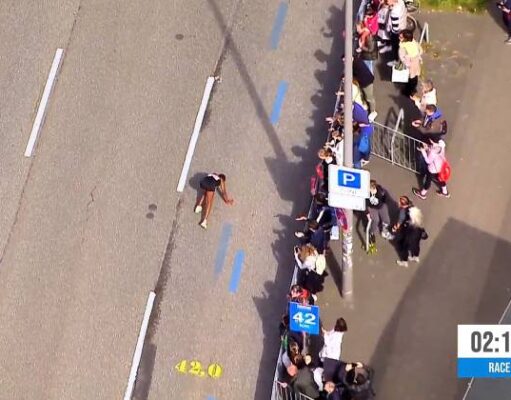 Lidera toda la prueba en Hamburgo y desfallece a metros de la meta
