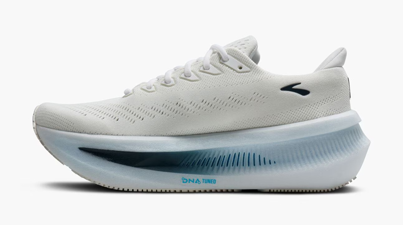 El compuesto DNA Tuned es una espuma infusionada con nitrógeno y doble densidad (talón más blando / antepié más reactivo) que ha salido del laboratorio de innovación de Brooks que tiene como objetivo aterrizajes acolchados y despegues reactivos, reduciendo capas intermedias para una pisada más limpia.