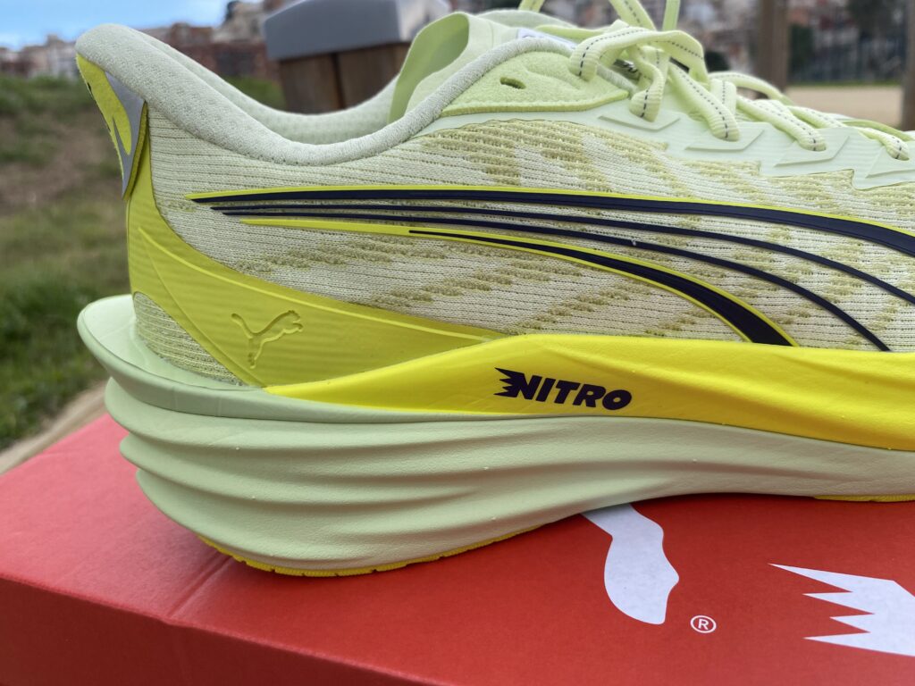 La sensación que transmite la Deviate NITRO 4 se caracteriza por una amortiguación amable en la fase de aterrizaje, seguida de una respuesta más viva cuando aparece la fuerza de propulsión. Es un equilibrio que no todas las zapatillas mixtas consiguen, ya que muchas pecan de excesivamente rígidas o, por el contrario, demasiado blandas para ritmos altos. En este caso, Puma ha buscado una pisada fluida en la que la doble capa de espuma genera un efecto dinámico más marcado sin comprometer la estabilidad.