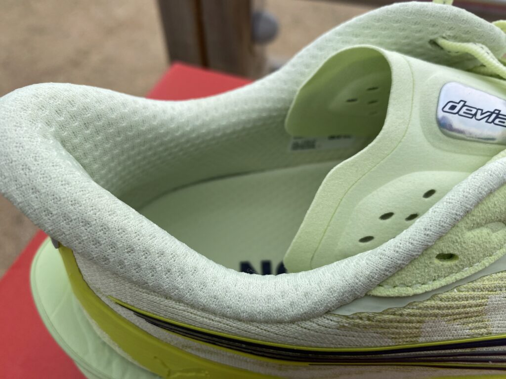La parte superior también recibe una actualización significativa. Puma incorpora una malla ligera que mejora la transpirabilidad sin sacrificar sujeción y añade un cuello afelpado junto con una lengüeta acolchada que aportan una sensación de protección envolvente.