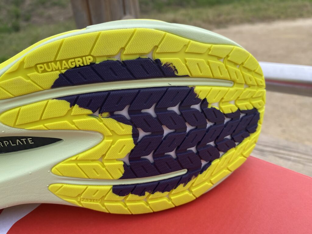 La suela PUMAGRIP completa una triada de mejoras pensadas para elevar el rendimiento del corredor diario. Este compuesto de caucho de alta durabilidad continúa siendo uno de los más fiables del mercado, especialmente en superficies mixtas y asfalto mojado.