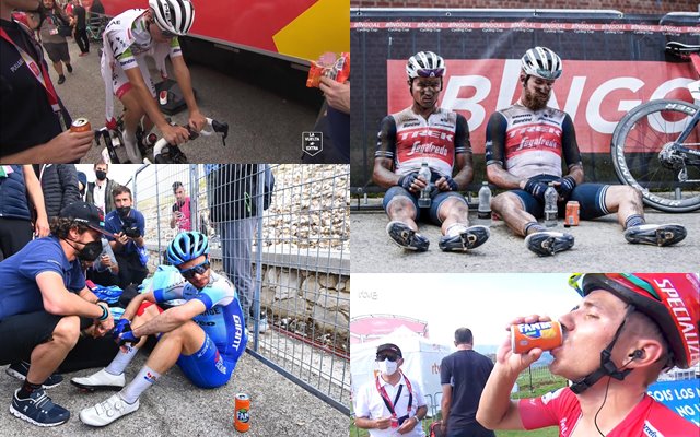 Como buenos observadores de todas las carreras del calendario internacional nos hemos percatado de que la mayoría de corredores toman este refrigerio nada más cruzar la línea de meta y hemos decidido inmortalizar, en portada, cuatro ejemplos claros de ciclistas bebiendo este mágico “recuperador”.