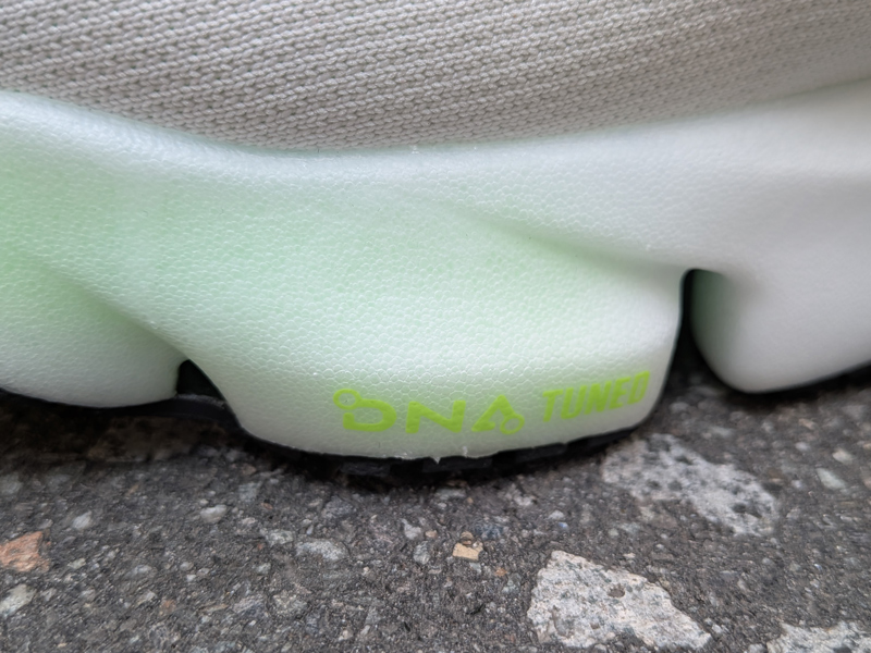 El resultado es una tecnología patentada de espuma supercrítica (DNA Tuned) que optimiza la amortiguación y la experiencia de carrera mediante dos tamaños de celdas distintos ubicados estratégicamente en la mediasuela.