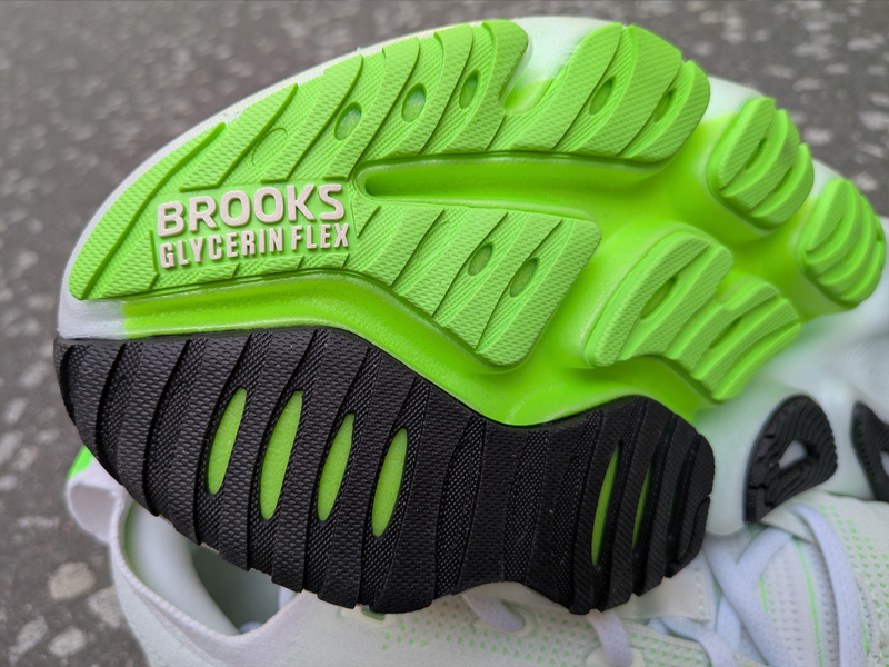 Brooks Glycerin 23 viene equipada en su suela con el compuesto Roadtack, fabricada con una mezcla de goma y sílice reciclado que