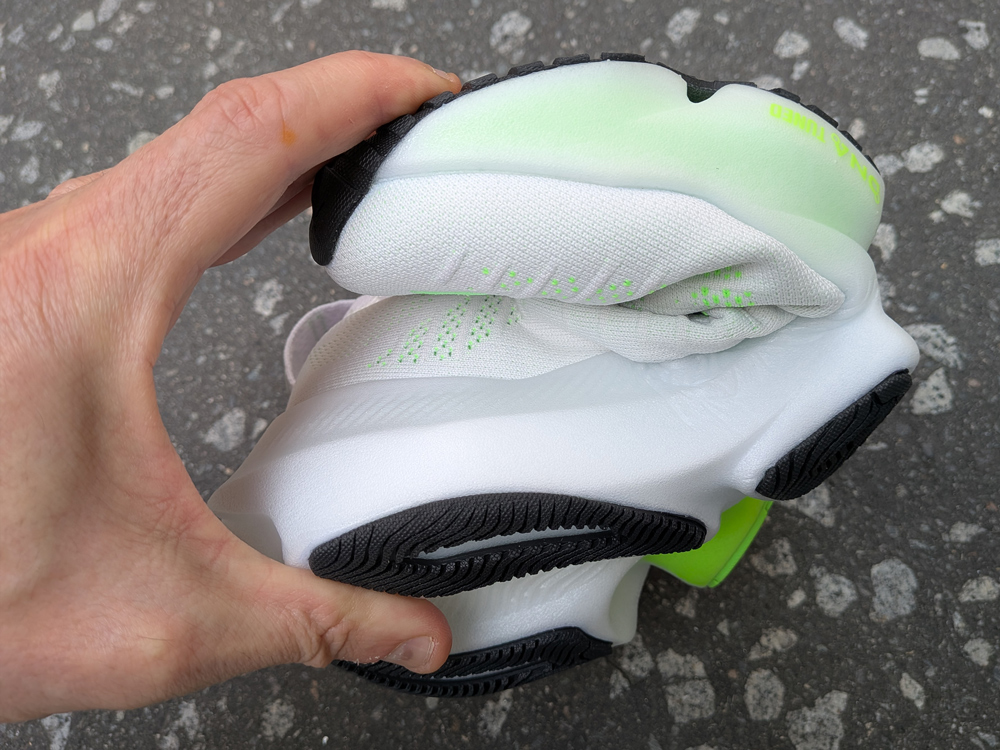 Canal en “S” en el mediopié (denominado Flex Groove): un surco asimétrico que “separa” talón y antepié para que puedan moverse con más independencia. Esto es lo que da esa transición menos guiada y más natural.