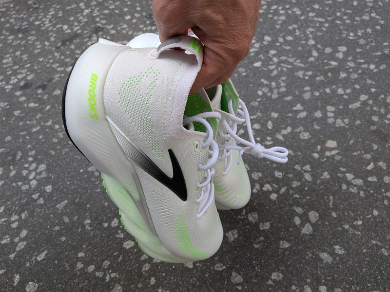 Aquí Brooks no arriesga: la Glycerin Flex mantiene ese comfort típico de la saga con un acolchado generoso en collar y talón, pero en conjunto, una zapa menos rígida que otras maximalistas (especialmente en el contrafuerte), lo que encaja con la idea de que el pie pueda moverse más “a su manera” sin perder seguridad.