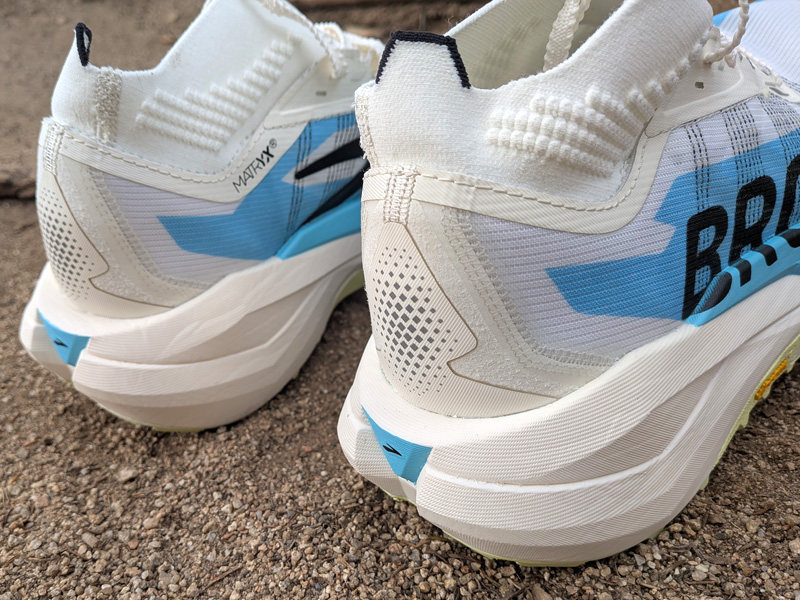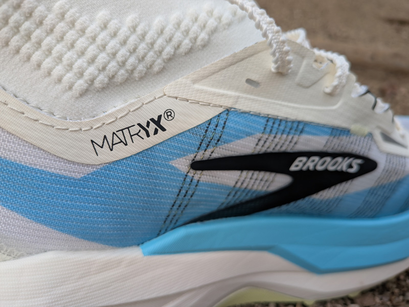 Brooks juega con la densidad del Matryx para aportar mayor o menor sujeción -y transpirabilidad- según la zona de la zapatilla: más denso y más sujeción en la zona del empeine y menos denso y más transpirable en la zona de la puntera de los dedos (mayor evacuación de agua).