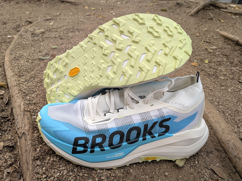 Suela Vibram Megagrip Elite: cuando Brooks quiere poner toda la carne en el asador en la suela en cuando a agarre, y no un enfoque más versátil/eco del TrailTack Green.