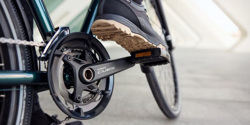 Las bicicletas urbanas eléctricas también se benefician de las ventajas de Shimano CUES. La durabilidad de la transmisión y la suavidad en los cambios garantizan una experiencia de conducción placentera y sin sobresaltos en entornos urbanos.