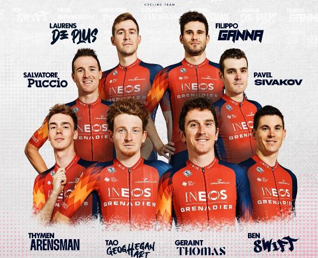 El francés Pavel Sivakov y el neerlandés Thymen Arensman, dos consolidados escaladores, serán la garantía del Ineos para poder luchar en las numerosas etapas montañosas del Giro. Junto a ellos, el conjunto se completa con la participación de Laurens de Plus, Savatore Puccio y Ben Swift
