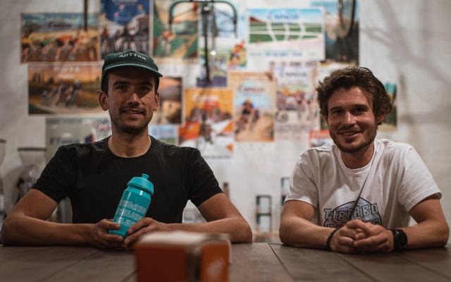 Raphaël Menu y Benoit Vidal llegan, puntuales a la cita, a l’Eroica Caffè. Lugar de culto para cualquier ciclista que pasee por las calles de ‘L’Eixample’ barcelonés. Uno con su bicicleta y un día después de completar los 200 quilómetros de la prueba de gravel The Traka; y el otro con la camiseta de Tibidabo Cycling Club que han diseñado y después de salir a rodar por Collserola.