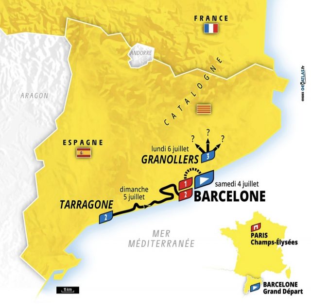 El lunes 6 de julio se disputará la tercera etapa, de la cual solo se ha dado a conocer el nombre de la ciudad de Granollers como punto de salida. Desde ahí, los ciclistas se dirigirán hacia Francia a través de un recorrido del cual se desvelará en octubre en París, cuando se presente todo el trazado de la prueba. Una ocasión para saber con exactitud los pueblos y ciudades que despedirán la visita del Tour por Cataluña.
