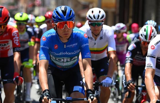 El que supuestamente era el gran líder del Bora Hansgrohe vio cómo se descolgaba del grupo de favoritos en el descenso del penúltimo puerto de la jornada. La bajada del paso Lanciano se la jugaba de mala manera y empezaba la subida final con un retraso importante,